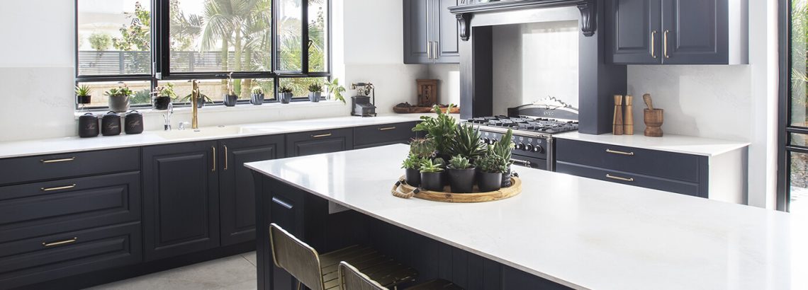 המטבח הזה הוא מטבח ממכר. אי אפשר להפסיק להסתכל עליו. מטבח בסגנון פרובאנס שמאופיין בנימה דרמטית בשל השימוש בגוון השחור שנבחר לחזיתות. על אף הגוון הכהה המטבח נראה מאוורר ומזמין. מערך החלונות והפתחים ואהילי גופי התאורה, עשויים זכוכית שקופה שמאזנת את מראה החזיתות האטום. ידיות הפליז מכניסות אליו נימה מהודקת, והאי שעומד במרכזו, מוסיף חן רב למראה כולו, במיוחד בשל המדף הפתוח שמאפשר למקם בו פירות עונה ססגוניים. המטבח שופע פתרונות אחסון ומעיד על משפחה שאוהבת לארח.